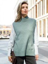 Стильный укороченный жилет из льняного полотна. Модель прямого силуэта. Воротник стойка. Фигурные края борта. По переду и спинке рельефные швы и вытачки. По переду застёжка на петлю и пуговицу. Изделие выполнено на подкладке из тонкого хлопка.