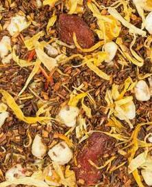 Купаж на основе африканского растения ройбос с добавлением вяленой вишни, кусоков яблока, цукатов, лепестков календулы и мальвы. Содержит пищевые ароматические масла.