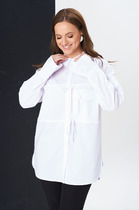 Блуза великолепно сочетается с брюками и юбками из денима, как брюки арт. 6062, представленные на фото.