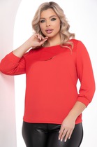 Блуза свободного кроя, укороченная, из хлопковой ткани. Воротник рубашечного типа с отрезной стойкой. По переду отрезная кокетка с отделочной тесьмой из бусин. Центральная застежка на пуговицы. Рукав спущенный на манжете с застежкой на пуговицу.