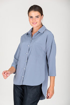 Свободный крой с изящной планкой-застежкой и плавным фигурным низом подчёркивает достоинства любой фигуры и создаёт непринуждённый, но утончённый силуэт.