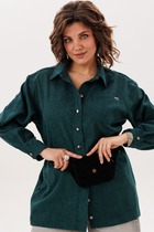 Блуза прямого силуэта, приталивается за счет завязок, вставленных в боковые швы. Застежка центральная на петли-пуговицы, перед с нагрудными вытачками, спинка с отрезной кокеткой, рукава втачные, одношовные с манжетой. Воротник и манжет рубашечного типа с отрезной стойкой. Воротник и манжет из отделочной ткани. Низ фигурный Блуза с акцентом на женственность и комфорт