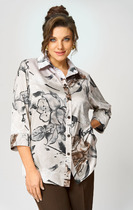 Рубашка (туника) женская из трикотажного полотна «флис» с набивным рисунком «клетка», свободного силуэта, с длинными втачными рукавами напритачных манжетах, стояче-отложным воротником, нагрудным карманом,фигурным низом и центральной бортовой застежкой на петли и пуговицы. Спинка – с отрезной кокеткой и бантовой складкой в центре соединительного шва.