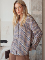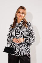Тёплая рубашка прямого кроя со спущенной линией плеча. Горловина обработана рубашечным воротником с отрезной стойкой. Застёжка центральная на петли-пуговицы. Спереди есть нагрудные карманы. Низ рукава обработан притачной манжетой, застёгивается на петли-пуговицы. По боковым швам карманы и фигурные разрезы. Изделие на подкладке.