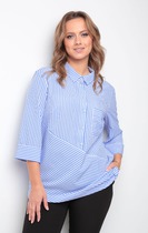 Лаконичная и строгая блузка из хлопковой ткани – отличный вариант для офиса. Блузка полуприлегающего силуэта слегка расширенная к низу, по бокам имеются небольшие разрезы. Блузка с центральной сквозной застежкой на потайные петли и пуговицы и одну декоративную пуговицу на стойке воротника. По переду имеются нагрудные выточки, по спинке имеется кокетка, от кокетки - небольшая сборка, что обеспечивает особый комфорт. Рукава длиной чуть ниже локтя, с отложными манжетами. На манжетах имеются декоративные петли и пуговицы. Такая блузка отлично сочетается с различными брюками, джинсами, сарафанами, создавая стильный современный образ.