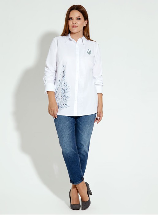 Эффектная блузка из хлопковой ткани, свободного силуэта, акцент сделан на печать на воротнике и манжетах, с центральной застежкой на петли пуговицы, линия плеча спущенная с притачной манжетой. Спинка лаконичная, со Практичная и элегантная блузка в классическом стиле выполнена из качественной хлопковой ткани с эластаном. Рукав длинный с отложным манжетом с заостренными уголками. Манжет застёгивается на одну петлю-пуговицу. Воротник рубашечный,отложной, на стойке. Застёжка спереди на отрезную планку и петли-пуговицы. По переду блузка декортрована вертикальными защипами и нежным принтом. По спинке также выполнены короткие защипы от среза горловины. Нагрудные вытачки обеспечивают идеальную посадку на фигуру. Прекрасный вариант блузки на каждый день для стильной и энергичной девушки.