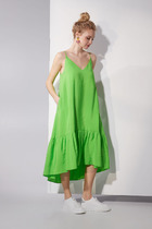 Элегантное длинное платье полуприлегающего силуэта. V-образная горловина по переду и спинке на внутренней обтачке. Тонкие брители с регулируемой высотой.