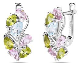 Серьги, морганит , перидот , топаз, Брюнетка