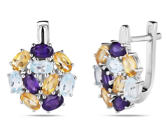 Серьги, арт.658594 Серебро Серебро 925, 5,23 гр., аметист , топаз , цитрин