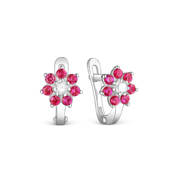 Совместные покупки Симферополь Ювелирные украшения и бижутерия Серьги — Серьги детские Цветочки из серебра с фианитами родированные 925 пробы 402111-033