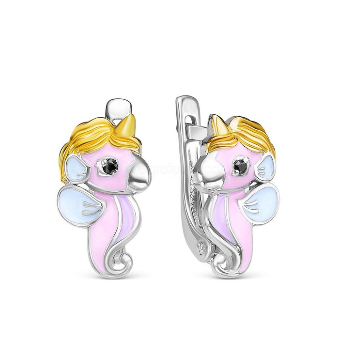Серьги детские из серебра с эмалью, позолотой и фианитами родированные