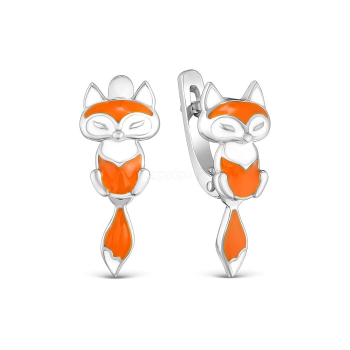 Совместные покупки Симферополь Детские аксессуары Украшения, бижутерия — Серьги детские из серебра с эмалью родированные - Лисы (подвижный хвостик) 925 п
