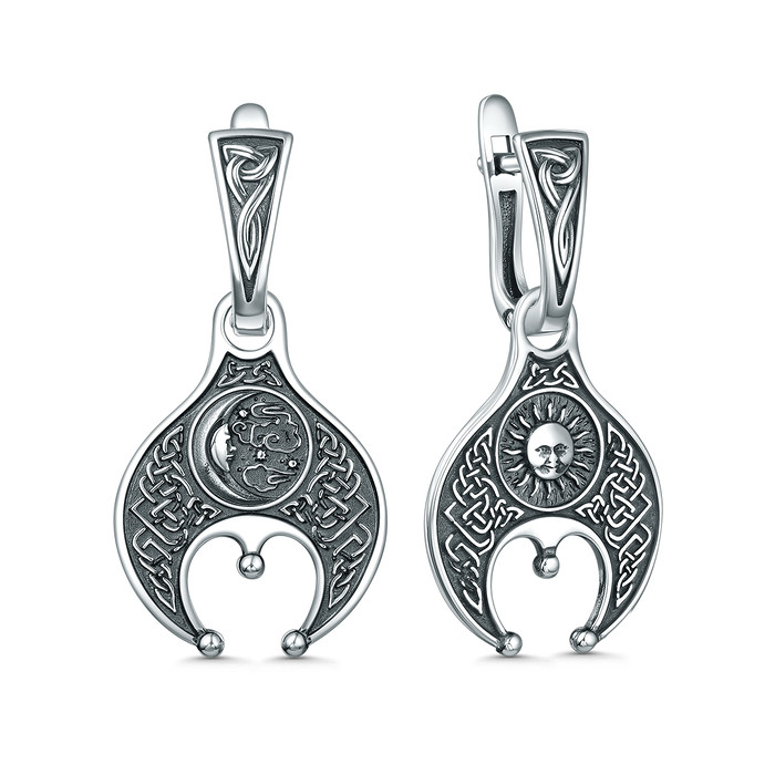 Серьги двусторонние из чернёного серебра - Лунница (2в1) 2100062