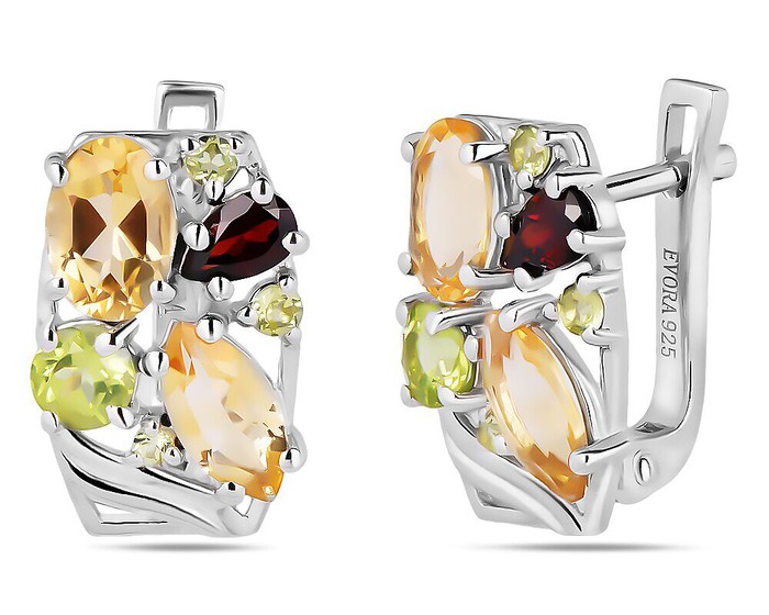 Серьги, арт.658651 Серебро Серебро 925, 4,48 гр., гранат , перидот , цитрин