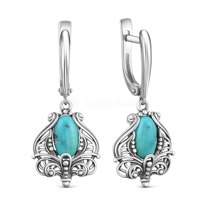 Серьги из чернёного серебра с нат.бирюзой