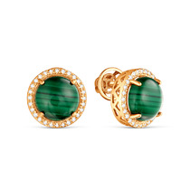 Серьги из золочёного серебра с натуральным малахитом и фианитами 925 пробы С-407