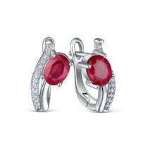 Серьги из серебра с рубином и кубическим цирконием родированные 925 пробы GTE-73