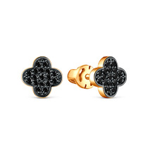Серьги-пусеты из золочёного серебра с фианитами и родированием 925 пробы 2-296зч