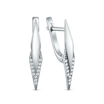 Серьги с фианитом родированные серебро 925*