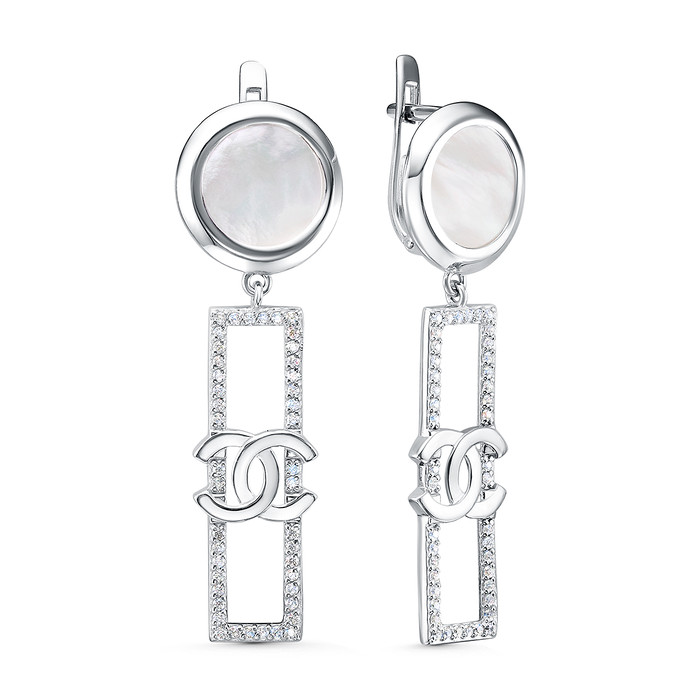 Совместные покупки Симферополь Ювелирные украшения и бижутерия Серьги — Серьги из серебра с белым перламутром и фианитами родированные 925 пробы С-4532-