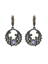 Серьги из серебра с бриллиантами и плавленым кварцем родированные