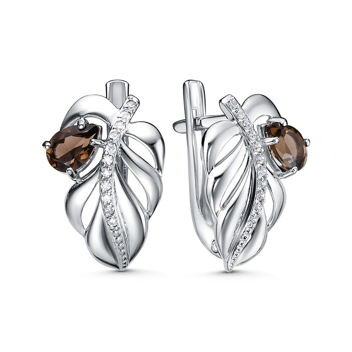 Совместные покупки Симферополь Ювелирные украшения и бижутерия Серьги — Серьги из серебра с дымчатым кварцем и фианитами родированные 2-4148-001