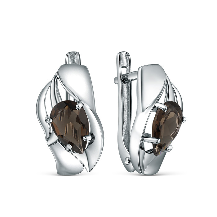 Совместные покупки Симферополь Ювелирные украшения и бижутерия Серьги — Серьги из серебра с дымчатым кварцем родированные 1-5454-001