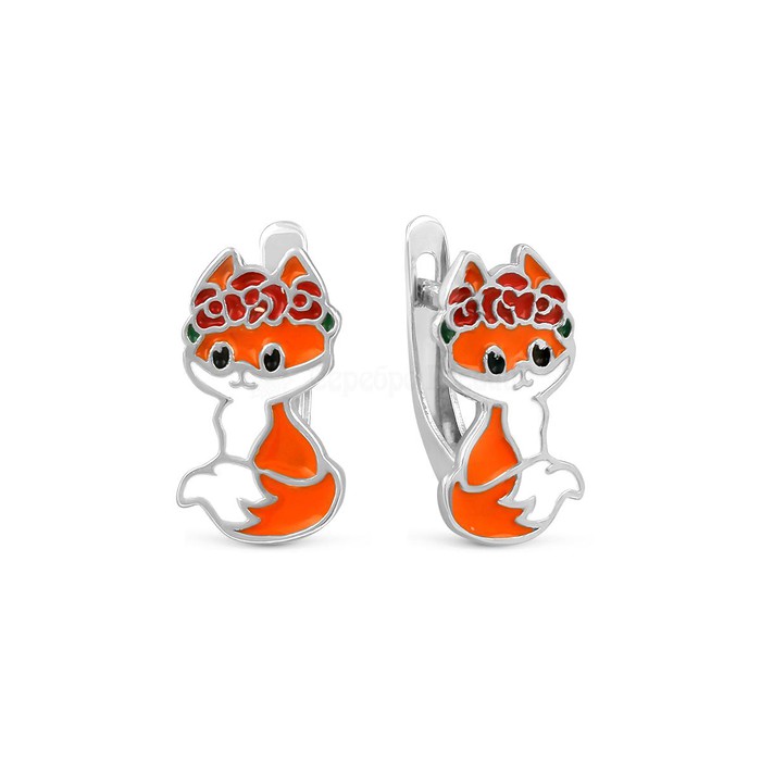 Серьги из серебра с эмалью родированные - Лисы