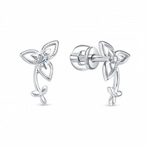 Серьги-пусеты из серебра с синт. муассанитами и фианитами родированные