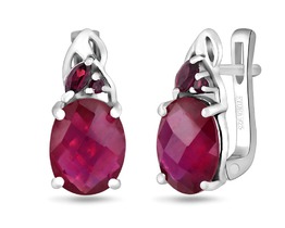 Серьги, 2 рубин корунд овал 7х9 мм/4.39 ct , 2 рубин корунд маркиз 2х4/0.25 ct,