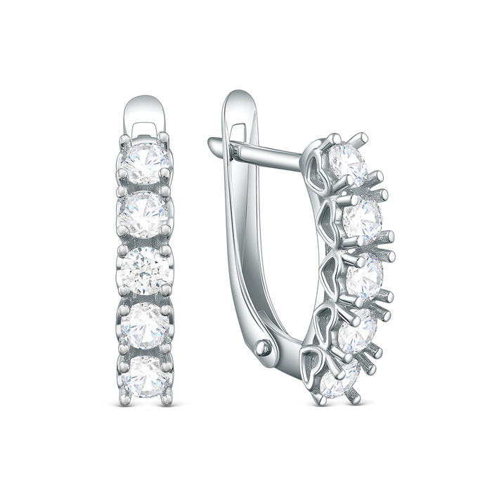 Серьги из серебра с фианитами родированные 925 пробы 11-0289