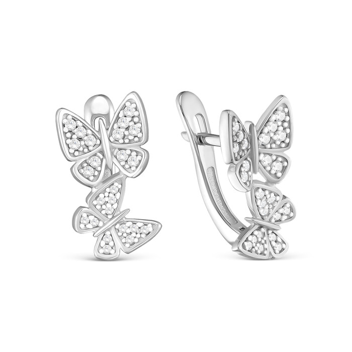 Совместные покупки Симферополь Ювелирные украшения и бижутерия Серьги — Серьги из серебра с фианитами родированные - Бабочки 925 пробы с-7264р200
