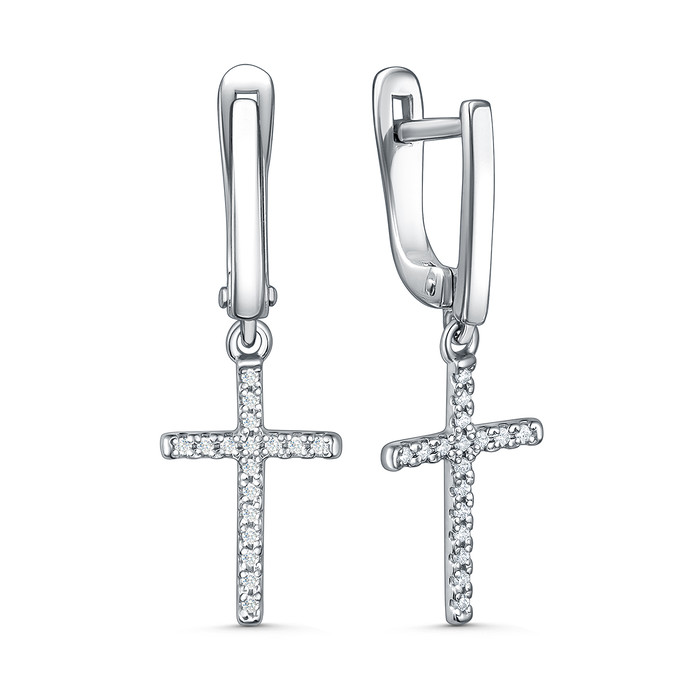 Совместные покупки Симферополь Ювелирные украшения и бижутерия Серьги — Серьги из серебра с фианитами родированные - Кресты 925 пробы С-4782-Р