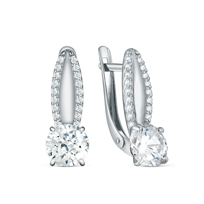 Серьги из серебра с фианитами родированные S2180231010