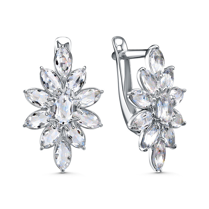 Серьги из серебра с горным хрусталём родированные 925 пробы С-222