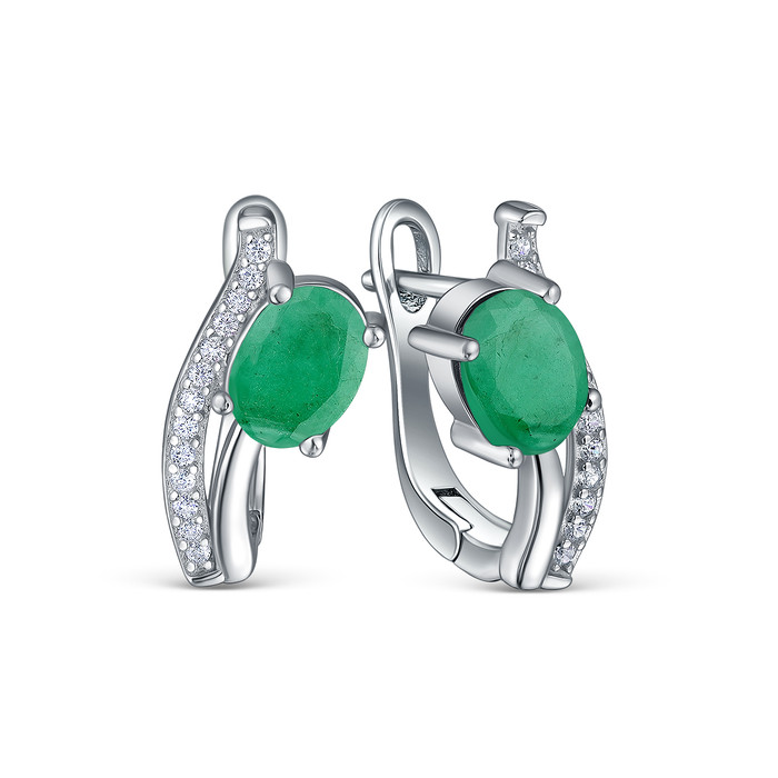 Совместные покупки Симферополь Ювелирные украшения и бижутерия Серьги — Серьги из серебра с изумрудом и кубическим цирконием родированные 925 пробы GTE-