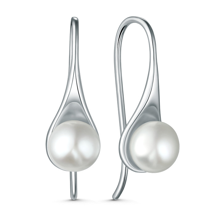 Серьги из серебра с культивированным жемчугом родированные 120229