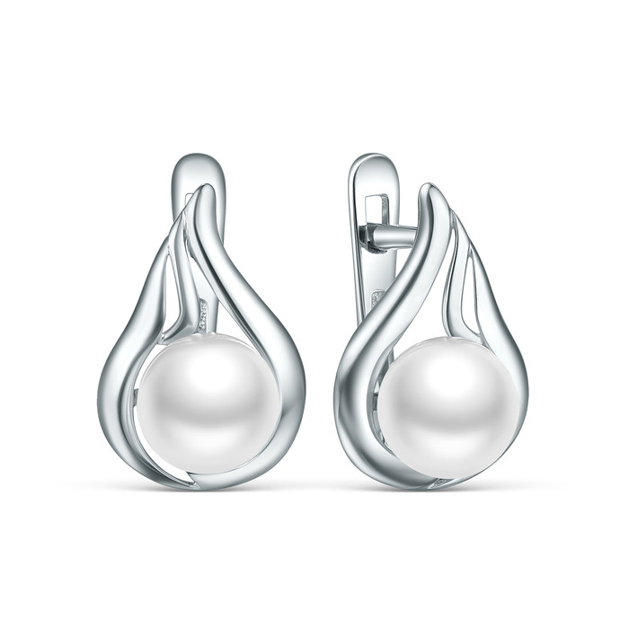 Серьги из серебра с культивированным жемчугом родированные С1427