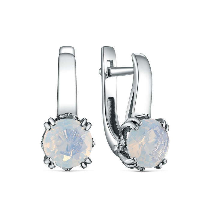 Серьги из серебра с лунным камнем фианитами родированные С00342