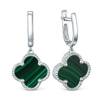 Совместные покупки Симферополь Ювелирные украшения и бижутерия Серьги — Серьги из серебра с малахитом родированные - Клевер, четырёхлистник 925 пробы 22