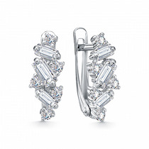 Серьги из серебра с натуральным гранатом и фианитами родированные Са-076р404