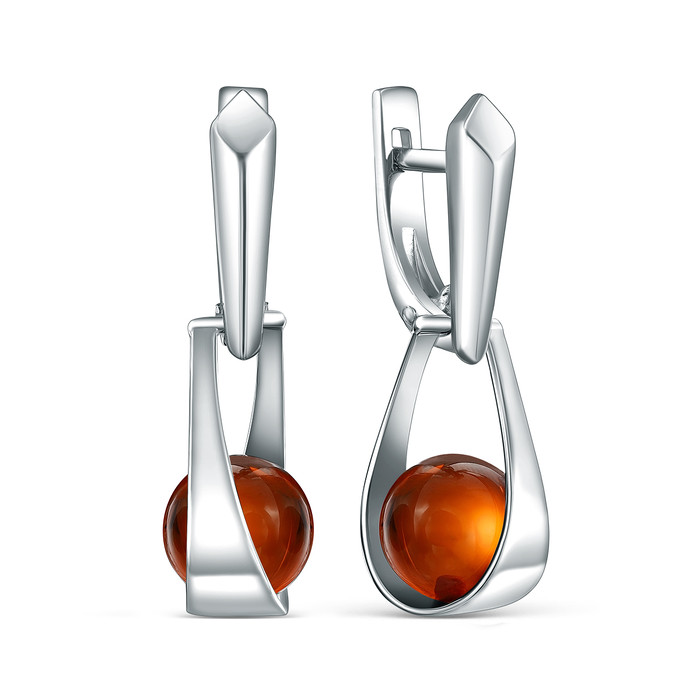 Серьги из серебра с натуральным янтарём родированные 925 пробы 2-404р640