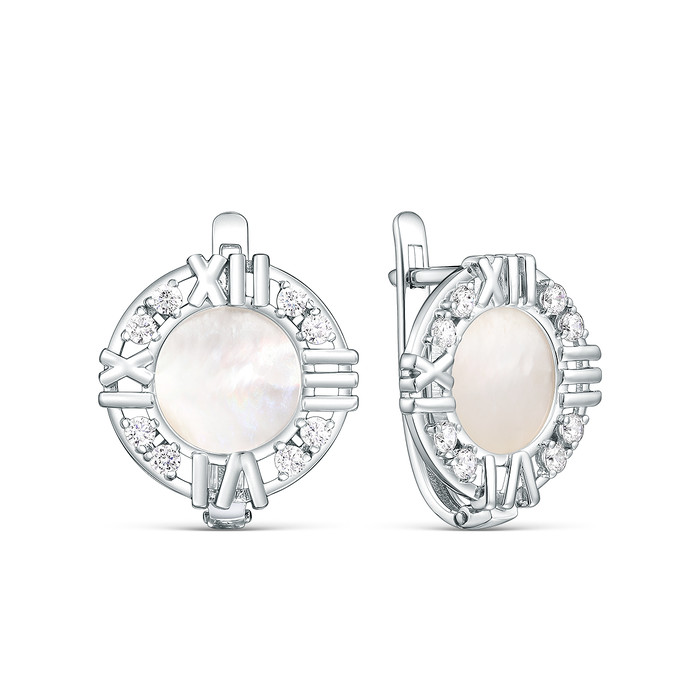 Совместные покупки Симферополь Ювелирные украшения и бижутерия Серьги — Серьги из серебра с перламутром и фианитами родированные 925 пробы с-4531-р