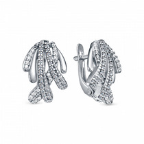 Серьги из серебра с рубином и кубическим цирконием родированные