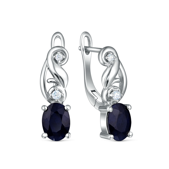 Серьги из серебра с сапфиром и кубическим цирконием родированные 925 пробы GTE-0