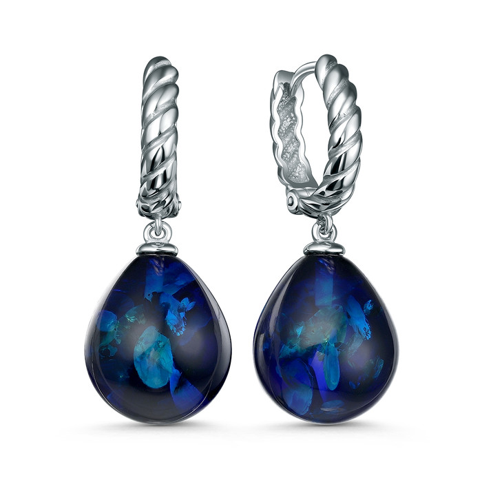 Серьги из серебра с синим янтарём родированные 04-802-0173-07