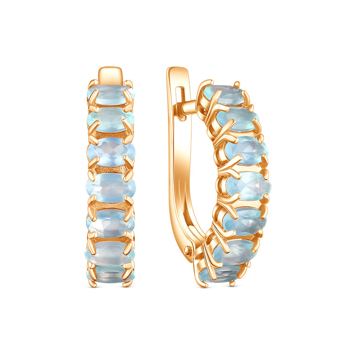 Серьги из золочёного серебра с натуральным голубым агатом 925 пробы С-3999зс435н