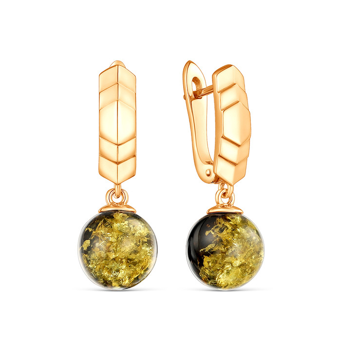 Серьги из золочёного серебра с натуральным прессованным янтарём 925 пробы 220 20