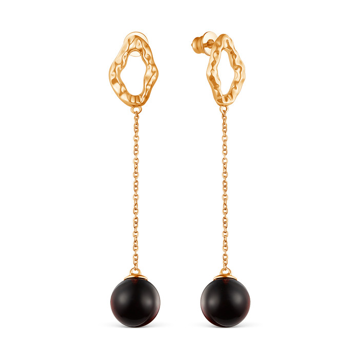 Серьги из золочёного серебра с натуральным янтарём 925 пробы 2200551201