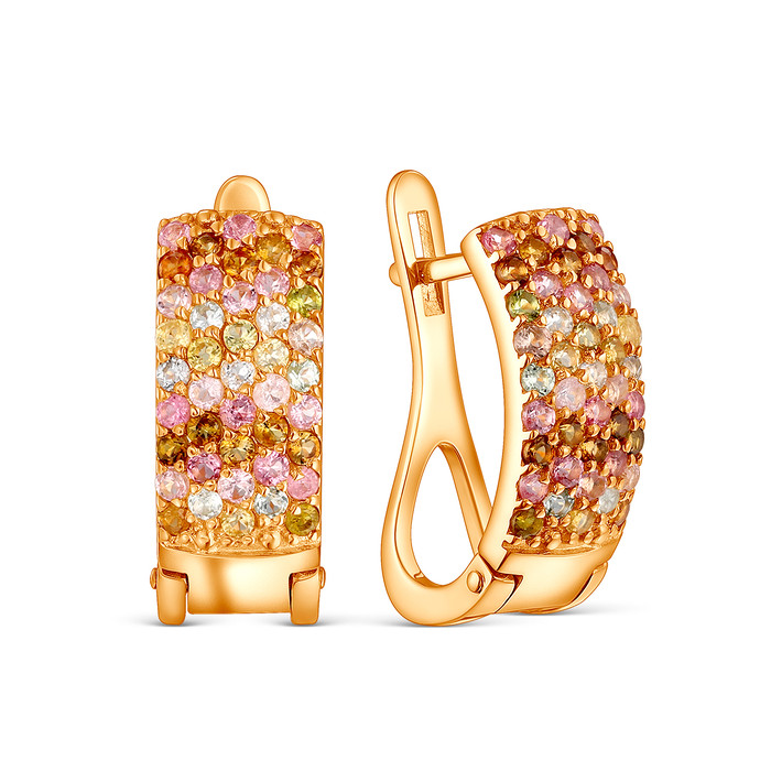 Совместные покупки Симферополь Ювелирные украшения и бижутерия Серьги — Серьги из золочёного серебра с турмалином мульти 925 пробы 2-473з428